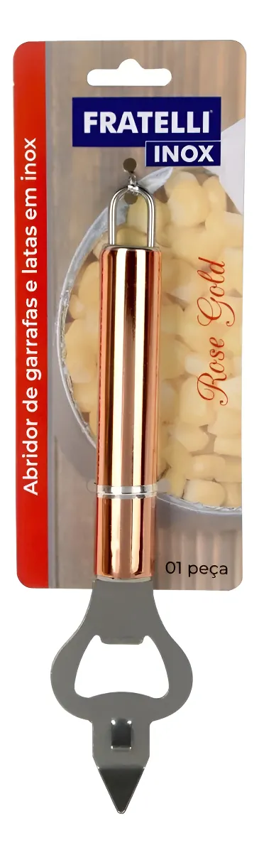 Adicione um toque de sofisticação às suas tarefas diárias com o Abridor de Garrafas e Latas em Inox Rose Gold Fratelli. Ideal para quem aprecia produtos funcionais com design refinado, este abridor é indispensável para sua cozinha, bar ou área de churrasco. Produzido em aço inoxidável de alta qualidade com um acabamento em tom rose gold, ele combina resistência, beleza e praticidade em um único produto.