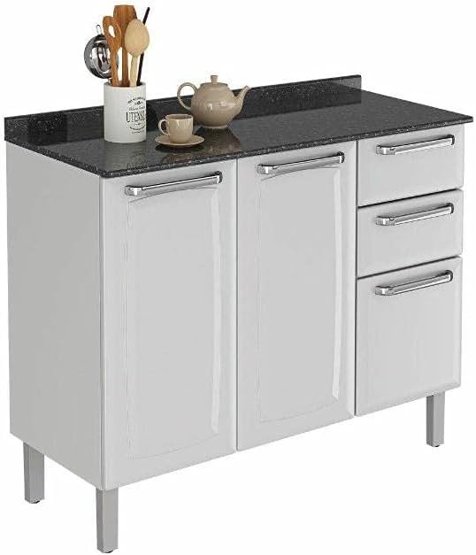Com 3 portas e 2 gavetas, proporciona excelente espaço interno para armazenar utensílios, mantimentos, produtos de limpeza ou documentos, mantendo tudo organizado e sempre à mão.