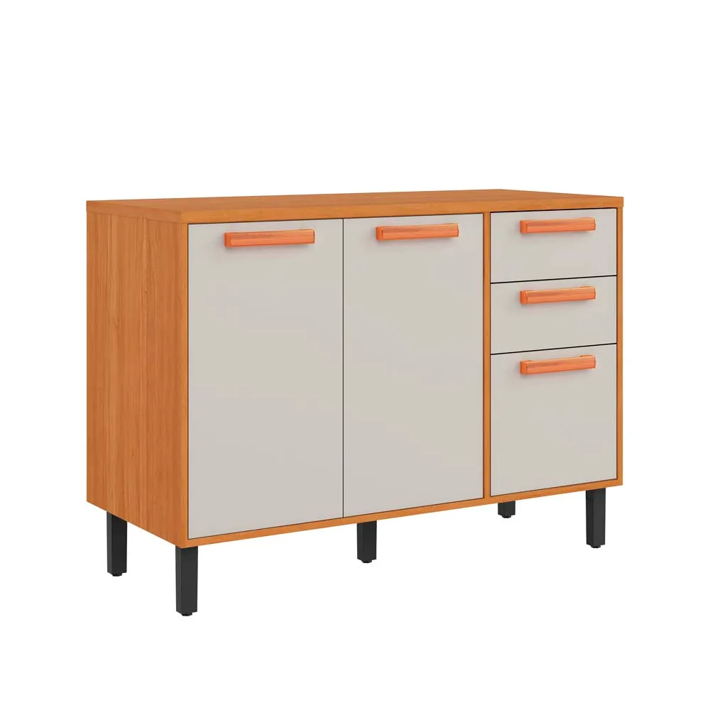 Composição: 3 portas + 2 gavetas — excelente para organização de utensílios, mantimentos, louças.