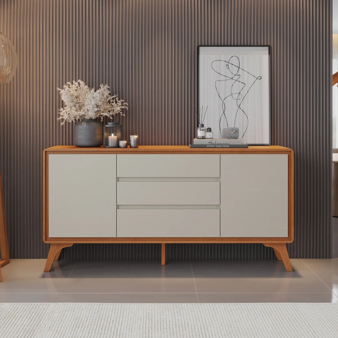 Transforme sua casa com o Buffet Sinus 2 Portas 3 Gavetas – Naturalle / Off White.