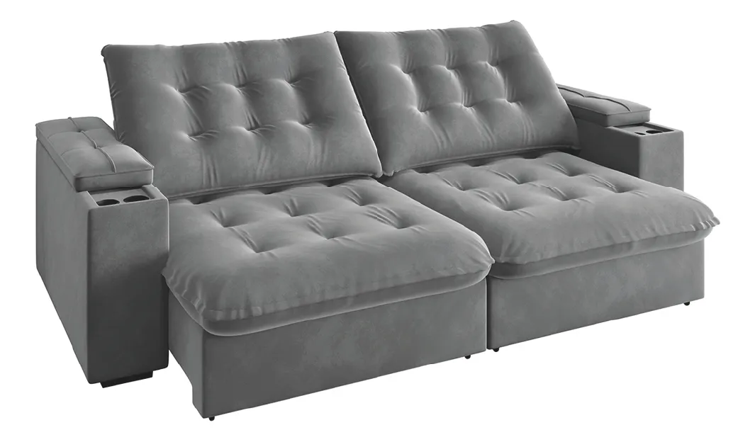 CONJ. ESTOFADO EXATA ALEMANHA 2,30 RETRATIL RECLINAVEL CINZA